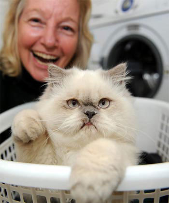 Kimba, con mèo 4 tháng tuổi ở Sydney, Australia, bị quay trong máy giặt 30 phút hôm 28/5. Kimba bị sốc và giảm thân nhiệt, mắt nó bị viêm loét do xà phòng. Nhưng bây giờ Kimba được cho là đã hồi phục. Ảnh: Rex Features.