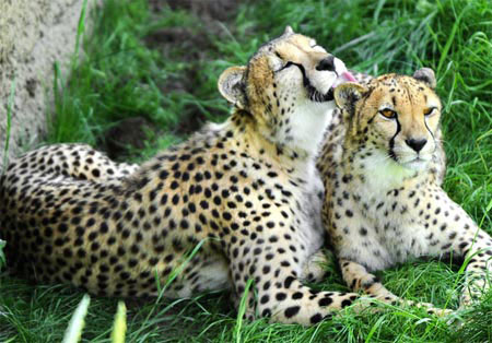 Hai con báo âu yếm nhau ở sở thú Indianapolis. Ảnh: AP.