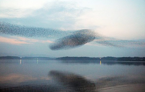 Hàng trăm nghìn con mòng két ken đặc như đám mây trên hồ ở tỉnh Bắc Jeolla, Hàn Quốc. Ảnh: EPA.