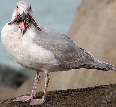 Mòng biển đứng đậu sau khi bắt được con sao biển ở vịnh Humboldt, California, Mỹ. Ảnh: AP.