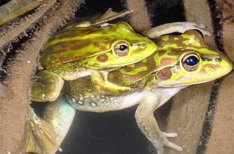 Đôi ếch chuông đốm vàng ở New South Wales, Australia. Loài sinh vật này được cho là đã tuyệt chủng cách đây 30 năm vừa được phát hiện tại vùng nông thôn của Australia. Ảnh: AP.