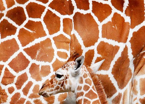 Hươu cao cổ 27 ngày tuổi đứng cạnh mẹ trong vườn thú ở Yokohama, gần Tokyo, Nhật. Ảnh: AP.