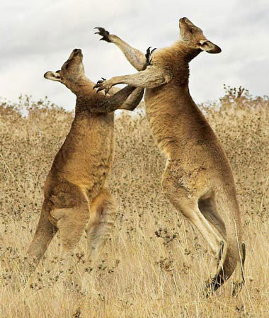Đôi kangaroo giao chiến để giành quyền kiểm soát một nhóm kangaroo cái. Ảnh: SOLENT