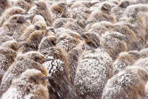 Chim cánh cụt vua chúi đầu tụm lại cùng nhau trong mưa tuyết ở đảo South Georgia, phía nam Đại Tây Dương. Ảnh: SOLENT.