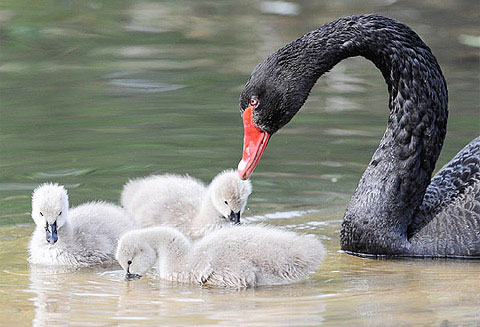 Thiên nga bố chơi cùng đàn con trong hồ ở Basel, Thụy Sĩ. Ảnh: AP. |
