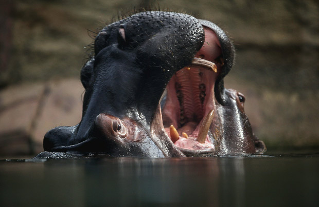 Hai con hà mã vui chơi trong hồ bơi ở vườn thú tại Cologne, CHLB Đức. |