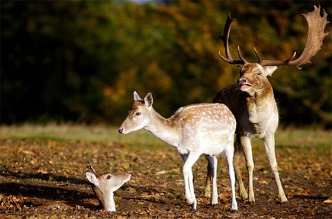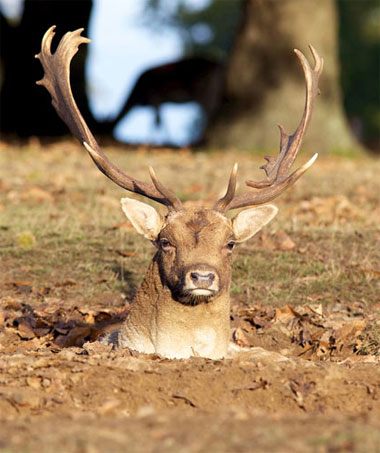 Một con hươu đực đào hố trong công viên Knole, gần thành phố Sevenoaks, hạt Kent, Anh để tìm bạn tình. Những chiếc hố do hươu đực đào và có chức năng của "nhà vệ sinh", song vào mùa sinh sản hươu cái sẽ ngửi mùi phân và nước tiểu trong hố để chọn bạn tình. (Ảnh: CATERS).