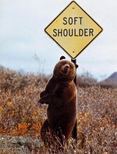 Gấu nâu cọ xát cơ thể vào cột biển báo để tống khứ cơn ngứa trong công viên quốc gia Denali, bang Alaska, Mỹ. (Ảnh: Solent News).