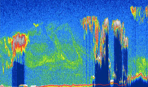 Các xoáy màu xanh lục sáng trong bức ảnh vệ tinh của NASA là những khối bụi khổng lồ có độ cao tới 10 km bay lẫn cùng mây tại Trung Quốc. Vệ tinh Calipso của Mỹ đã theo dõi những khối bụi này hơn 10 ngày khi chúng di chuyển qua Thái Bình Dương, Canada và Mỹ. Ảnh: NASA. |