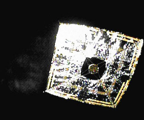 Tàu vũ trụ Ikaros của Nhật Bản căng các cánh buồm trong không gian. Trên mặt buồm có pin mặt trời dạng màng mỏng để sản xuất điện.