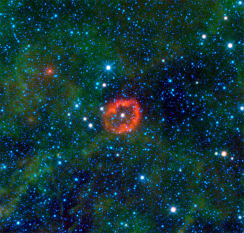 Bức xạ hồng ngoại thoát ra từ một ngôi sao tạo thành hình đôi môi trong vũ trụ. Ảnh: NASA. |