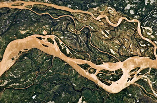Sông Parana cùng các nhánh của nó giống như những dải lụa màu bùn tại Argentina. Parana là con sông lớn thứ hai tại Nam Mỹ. Ảnh: NASA.