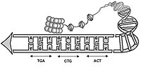 | Cấu trúc của một phần của một gen, gồm nhiều trinucleotide TGA CTG ACT, v.v... |