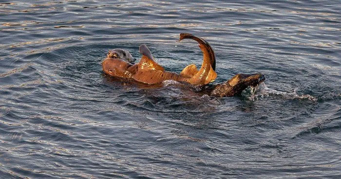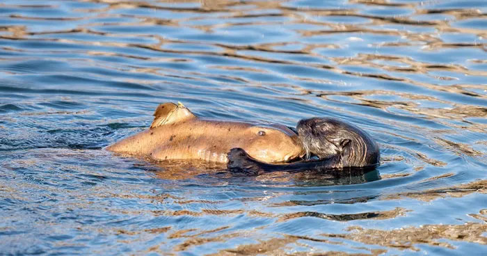 Theo đó, những bức ảnh lưu lại quãng thời gian một con rái cá đang ôm chặt trong lòng chú cá mập nhỏ đầy ấm áp. Hình ảnh này đã khiến các chuyên gia hàng đầu về sinh vật biển phải ngỡ ngàng và chia thành hai phe khác biệt. Một bên cho rằng đó là khoảnh khắc đẹp, thể hiện tình bạn giữa hai loài động vật khác loài. Bên còn lại cho rằng đấy đơn thuần chỉ là rái cá đang cố gắng ăn thịt con cá mập mà thôi.